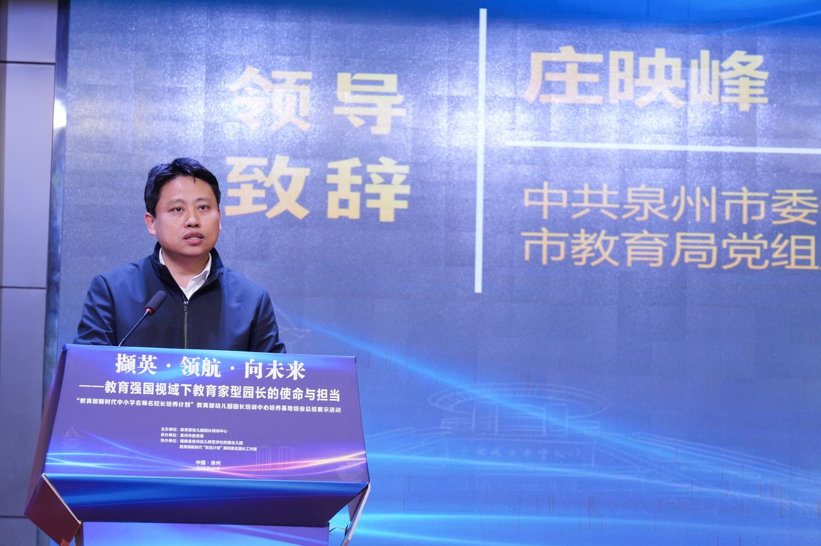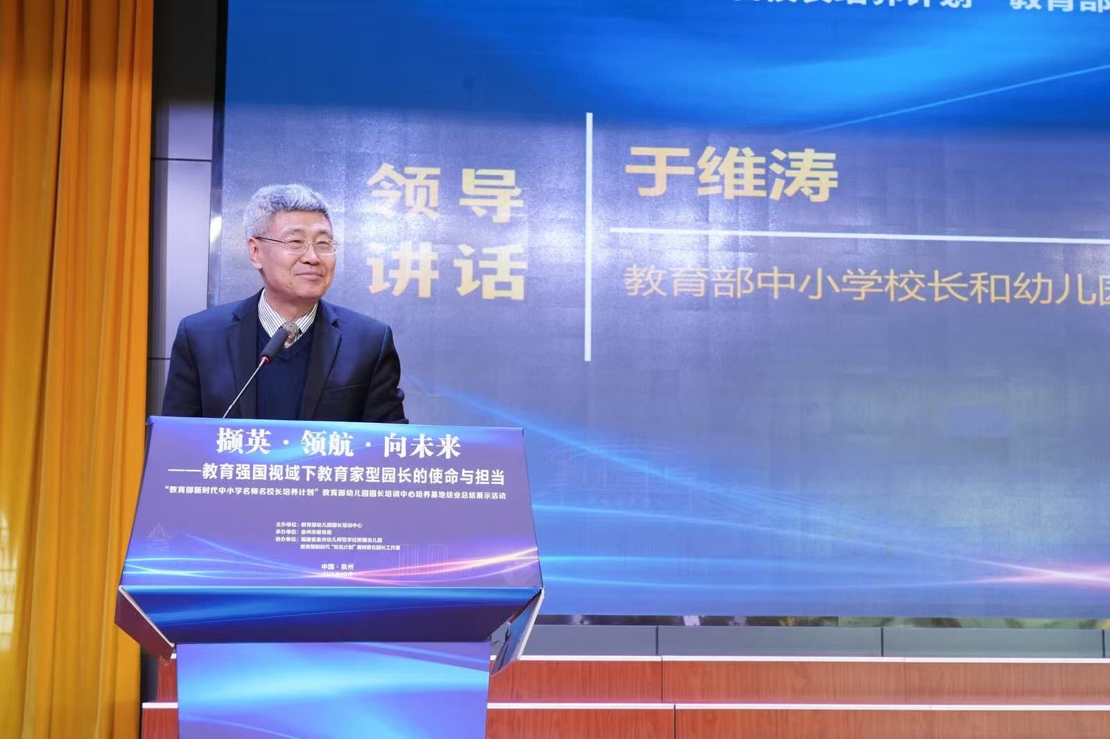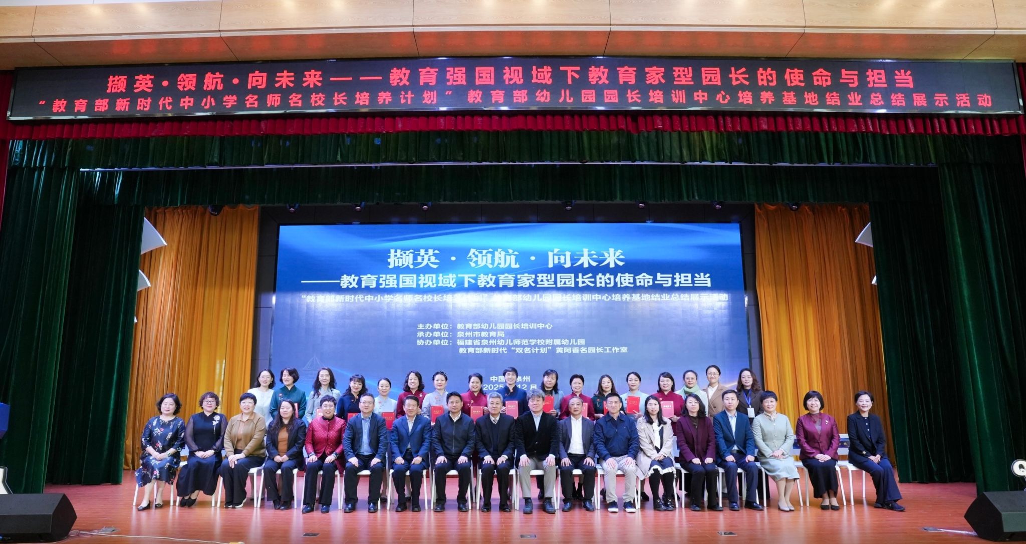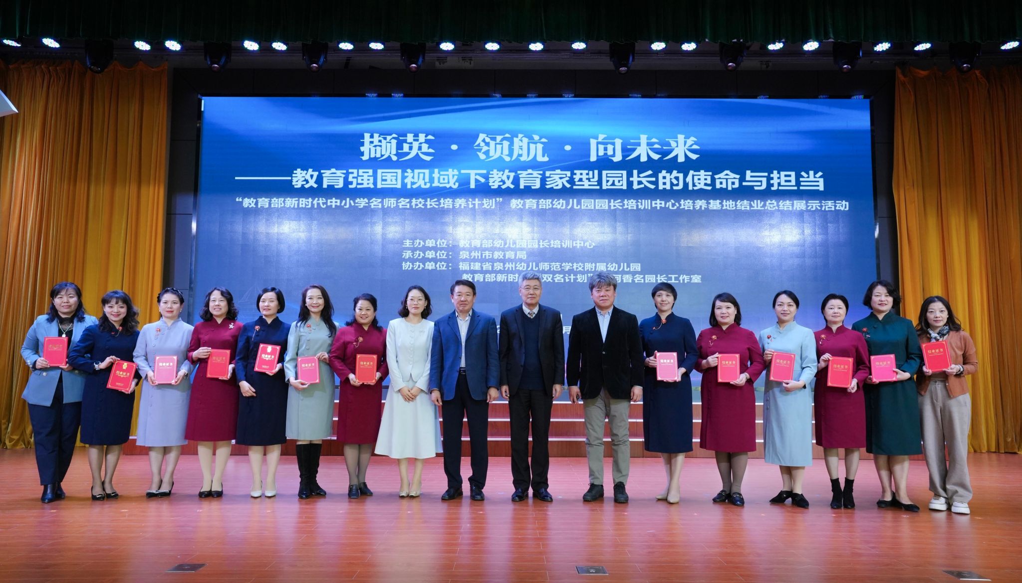 2025年12月14日,教育部幼儿园园长培训中心在福建泉州成功举办“新时代中小学名师名校长培养计划(2022-2025)”(以下简称“双名计划”)培养基地结业总结展示活动。本次活动以“撷英·领航·向未来——教育强国视域下教育家型园长的使命与担当”为主题,系统总结并展示了为期三年的名园长培养成果。