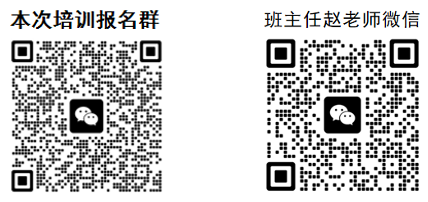 东北师范大学教育部幼儿园园长培训中心:石老师(办公电话0431-85098865);班主任:赵老师(18933987690)。请报名参训的学员扫描下方二维码入群,并修改群内备注为:园所+姓名+手机号码的统一格式。如果群二维码失效,可添加班主任赵老师个人微信(微信二维码见下图),邀请进群。